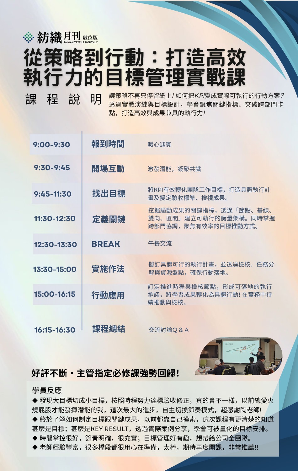 敬邀紡織月刊年度活動:從策略到行動:打造高效執行力的目標管理實戰課程,開放報名!