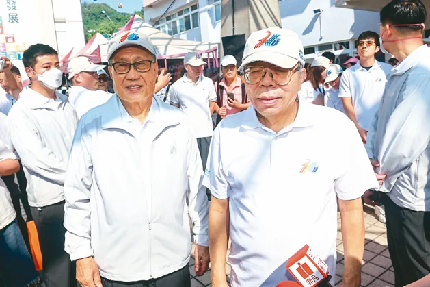 台塑集團昨日舉辦企業運動會,企業管理中心主委王文淵(右)、集團總裁吳嘉昭一同參觀園遊會。記者許正宏/攝影