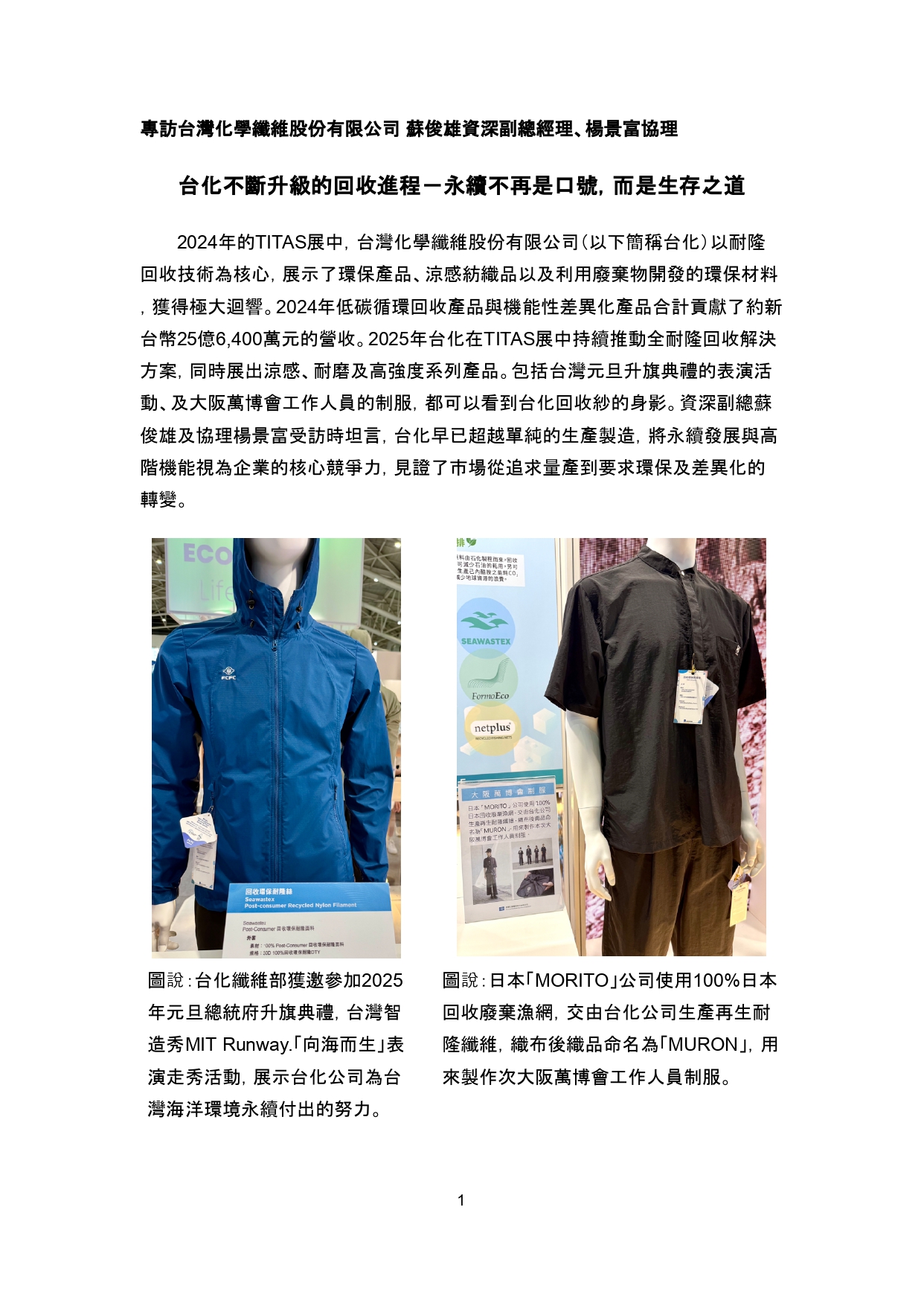 TITAS 2025系列報導:台化不斷升級的回收進程-永續不再是口號,而是生存之道