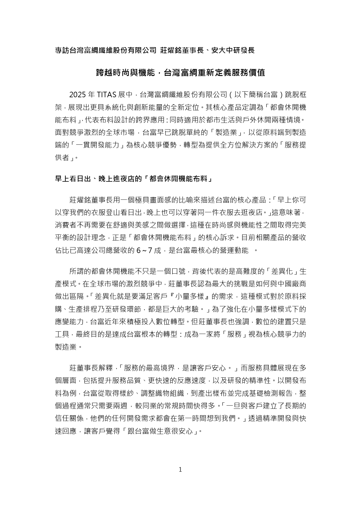 TITAS 2025系列報導:台富專訪-跨越時尚與機能,台灣富綢重新定義服務價值